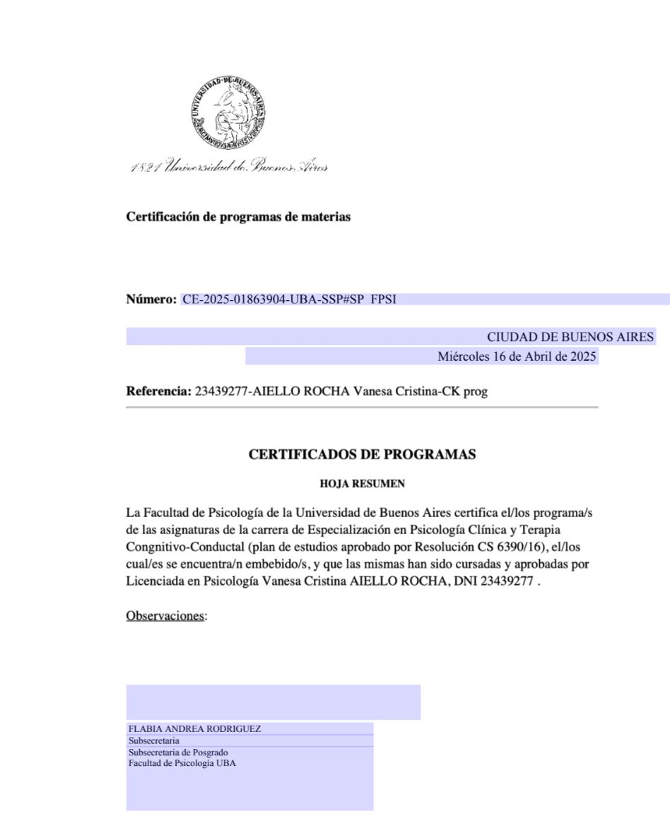 Mi experiencia fue buena. Las explicaciones de la dictora estuvieron muy claras, además que su empatía y amabilidad me hicieron sentir cómoda. Por otro lado la ubicación está en un lungar muy bonito de CABA; ña atención fue muy buena también, como también la paciencia ante todo: en el pago, en la charla.