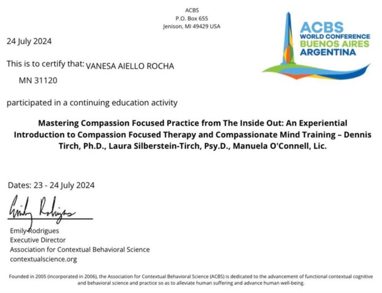 Solo vi a Vanesa una vez hasta el momento, pero en la consulta sentí su escucha muy activa, muy interesada en lo que le estaba comentando. También sentí que esta muy formada y me gusto que me explique los conceptos que ella me iba mencionando. Estoy satisfecha con lo que vi en mi primer sesión.